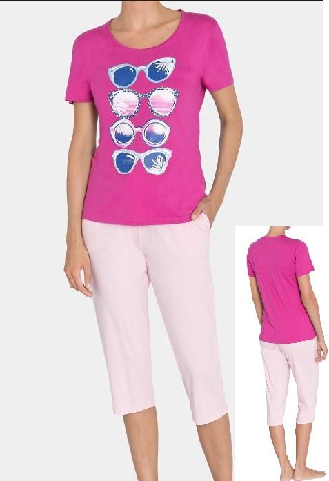 Pijama subtire, cu pantalon 3/4 si maneca scurta. Compozitia 100% bumbac si combinatie de nuante inveseleste imediat atmosfera si favorizeaza relaxarea.