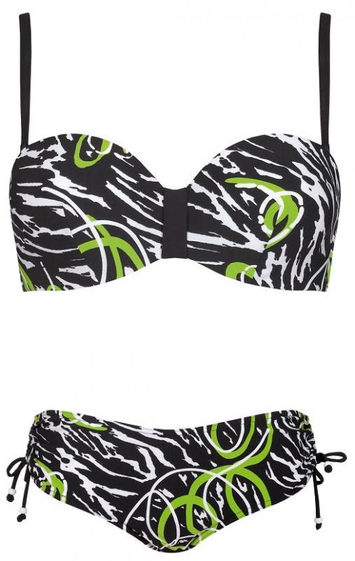 Costum de baie din 2 piese: sutien cu armatura si cupe captusite cu un burete usor, bretele clasice. Slipul este ajustabil pt inaltime in ambele laterale si are croiala tip hipster, usor mai lat pe laterale si pana la jumatatea poponetului la spate.