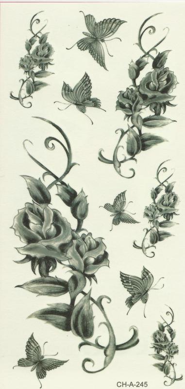 Tatuaj Temporar - Trandafiri alb negru cu fluturi