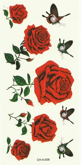 Tatuaj temporar cu trandafiri si fluturasi. Rezista 3-5 zile si se aplica deosebit de simplu.